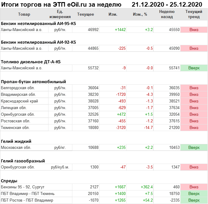 Итоги торгов на ЭТП eOil.ru с 21 декабря по 25 декабря 2020