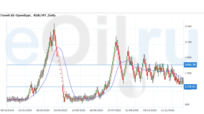 Цены на гелий газообразный, базис поставки Оренбургская область, выросли за неделю на 120 рублей до 1471 рубля за кубический метр.