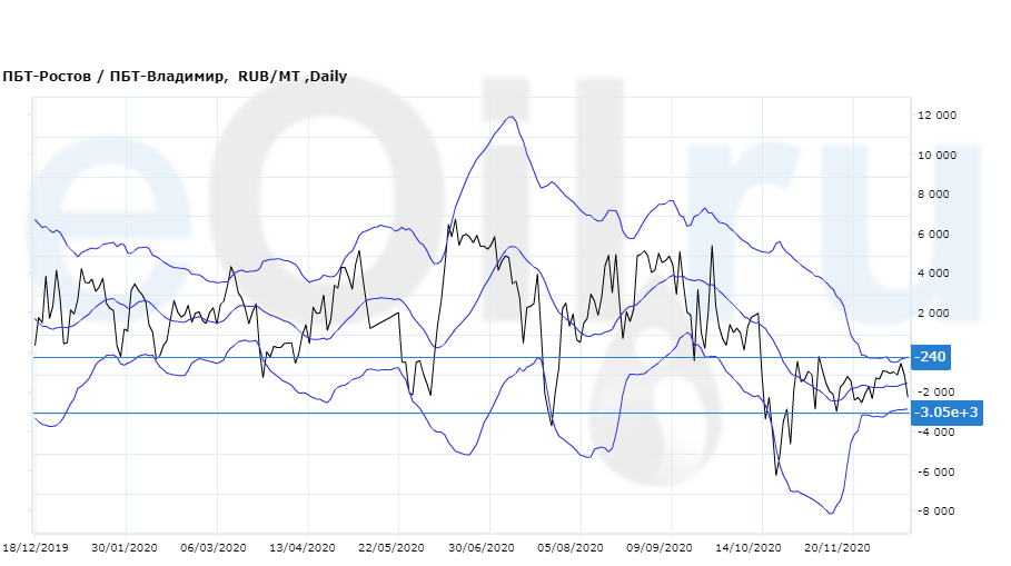 Разница цен между ПБТ на базисе Ростов и ПБТ на базисе Владимир.