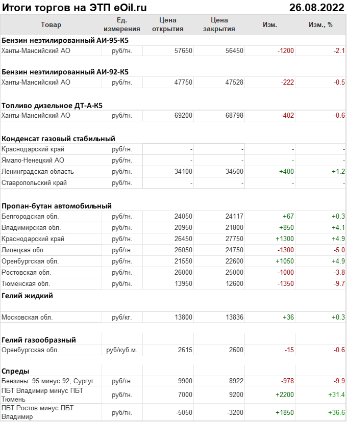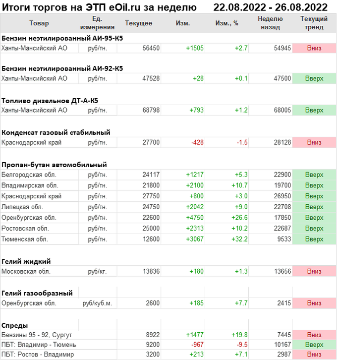 Итоги торгов на ЭТП eOil.ru с 22 по 26 августа 2022 года