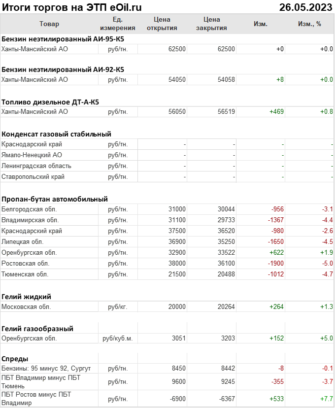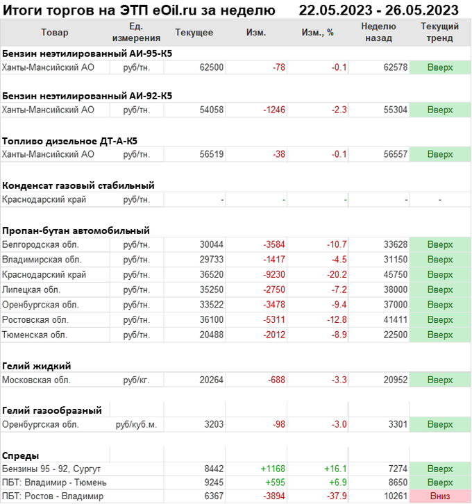 Итоги торгов на ЭТП eOil.ru с 22 по 26 мая 2023 года