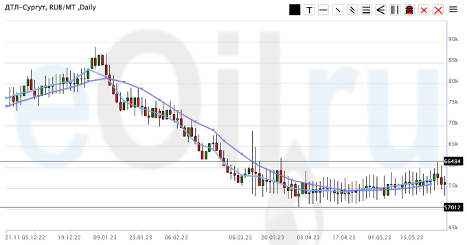 Цены на топливо дизельное ДТ-А-К5, базис поставки Ханты-Мансийский АО, снизились за неделю на 38 рублей до 56519 рублей за тонну.