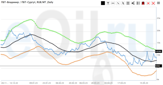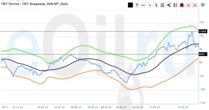 Разница цен между ПБТ на базисе Ростов и ПБТ на базисе Владимир.