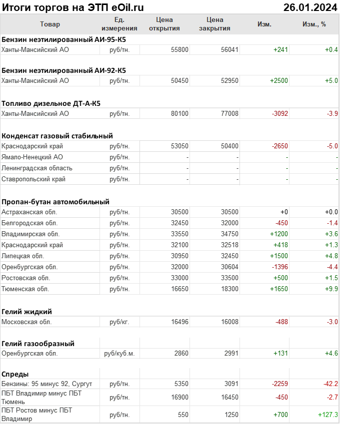Итоги торгов на ЭТП eOil.ru с 22 по 26 января 2024 года