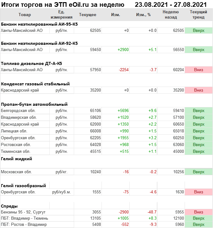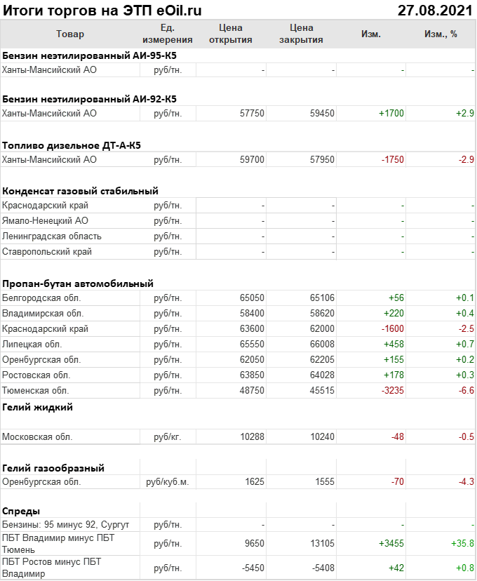 Итоги торгов на ЭТП eOil.ru с 23 по 27 августа 2021