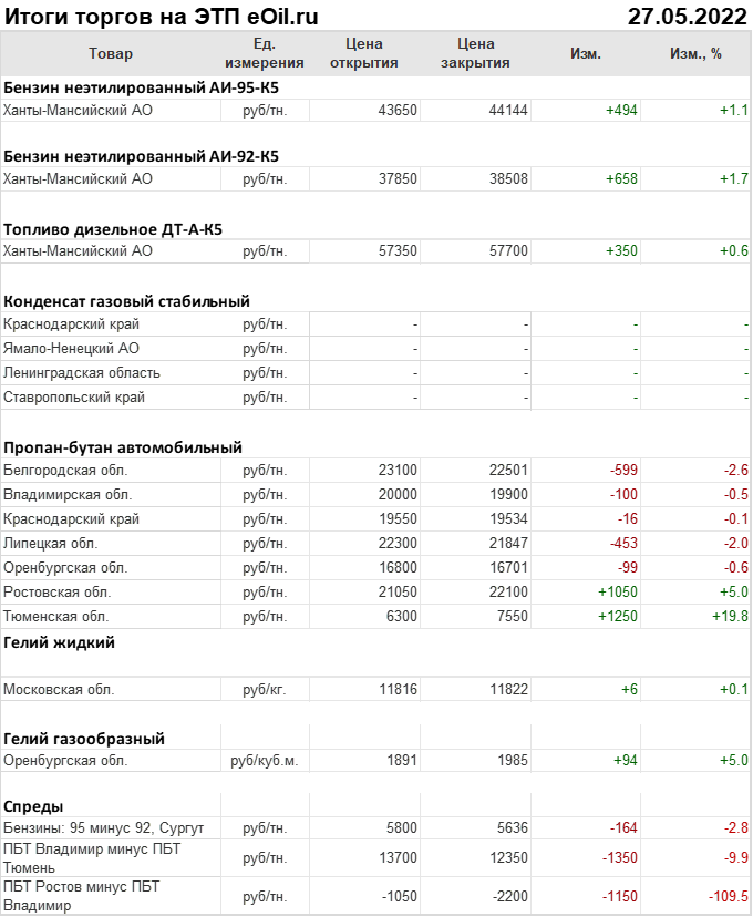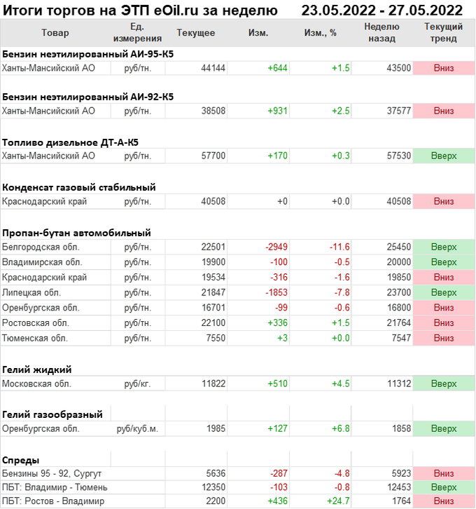 Итоги торгов на ЭТП eOil.ru с 23 по 27 мая 2022 года