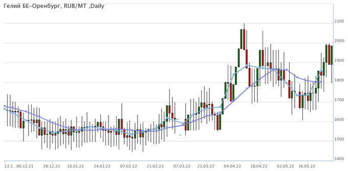 Цены на гелий газообразный, базис поставки Оренбургская область, выросли за неделю на 127 рублей до 1985 рублей за кубический метр.