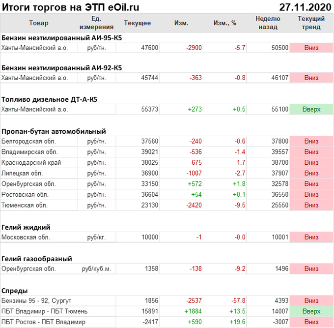 Итоги торгов на ЭТП eOil.ru с 23 по 27 ноября 2020
