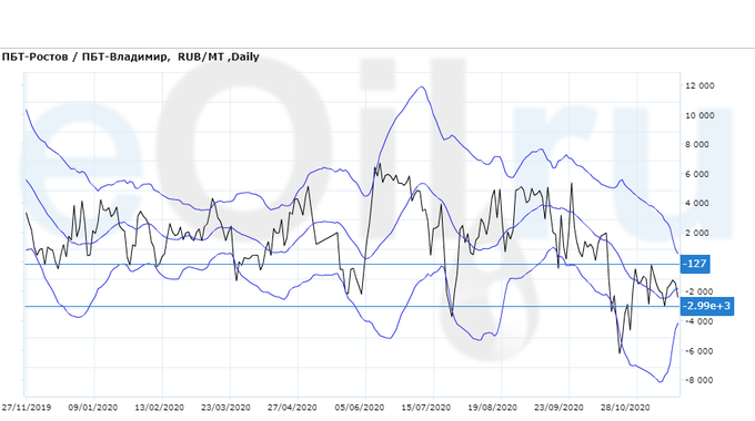 Разница цен между ПБТ на базисе Ростов и ПБТ на базисе Владимир.