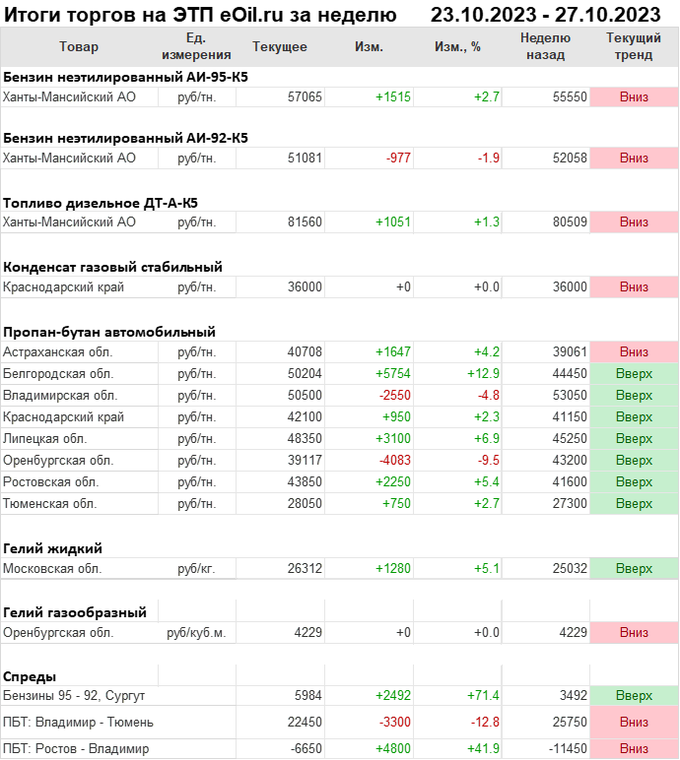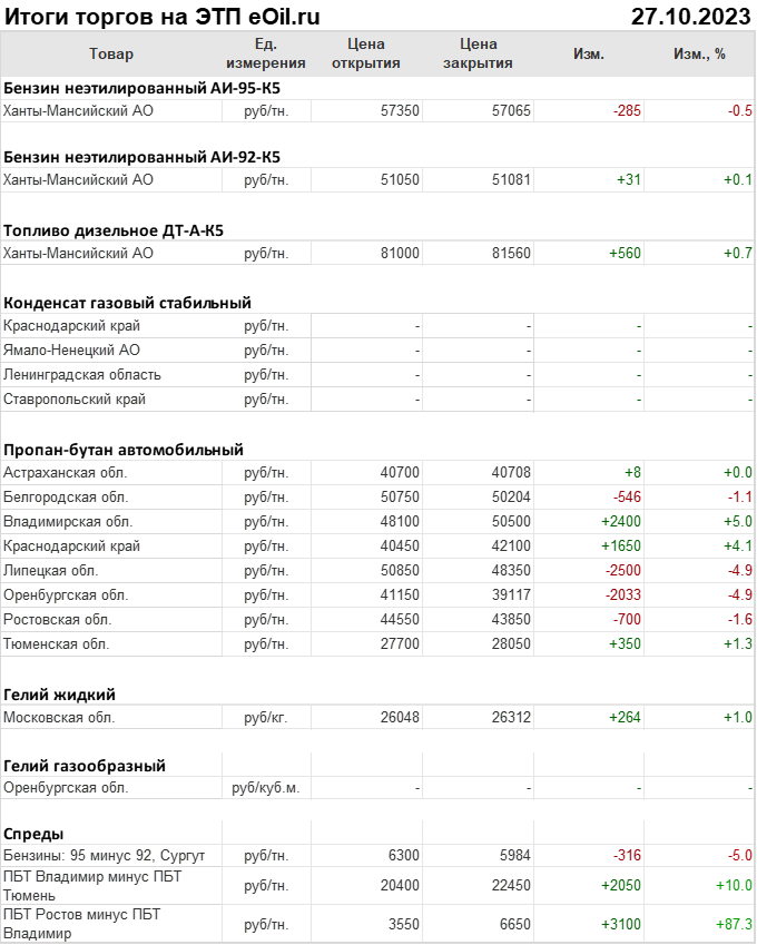 Итоги торгов на ЭТП eOil.ru с 23 по 27 октября 2023 года