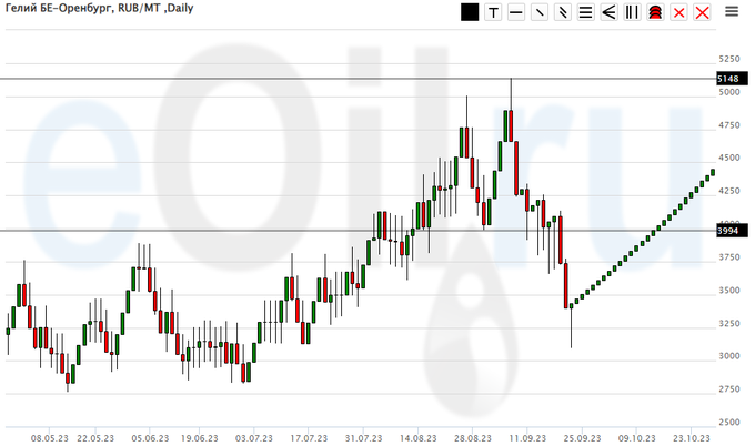 Цены на гелий газообразный, базис поставки Оренбургская область, не изменились за неделю, и составляют 4229 рублей за кубический метр.