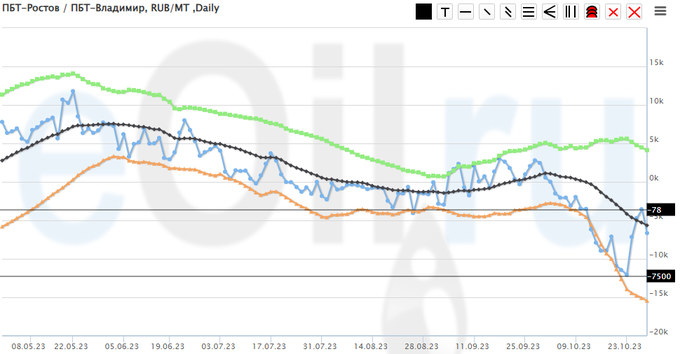 Разница цен между ПБТ на базисе Ростов и ПБТ на базисе Владимир.