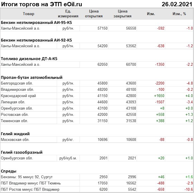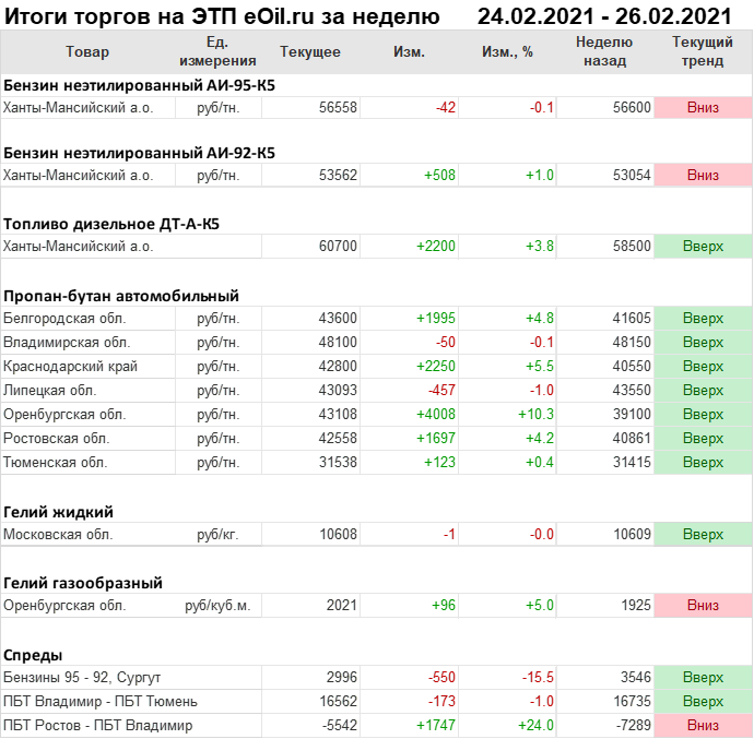 Итоги торгов на ЭТП eOil.ru с 24 по 26 февраля 2021