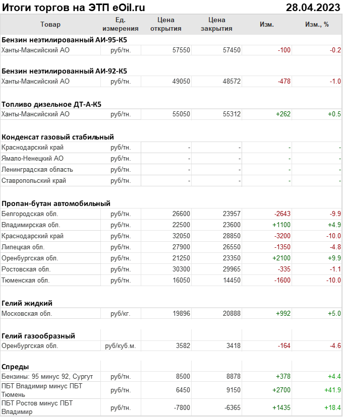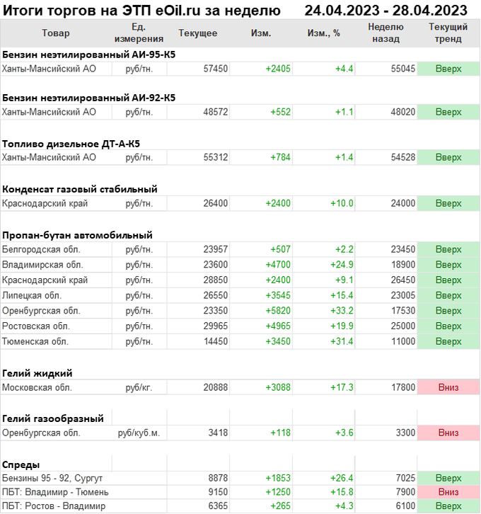Итоги торгов на ЭТП eOil.ru с 24 по 28 апреля 2023 года