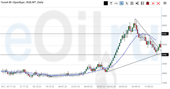 Цены на гелий газообразный, базис поставки Оренбургская область, выросли за неделю на 118 рублей до 3418 рублей за кубический метр.