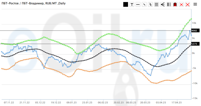 Разница цен между ПБТ на базисе Ростов и ПБТ на базисе Владимир.