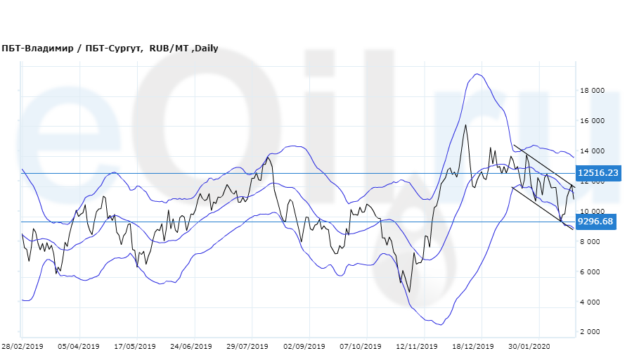 Разница цен между ПБТ на базисе Владимир и ПБТ на базисе Сургут (Ханты-Мансийский а.о.).