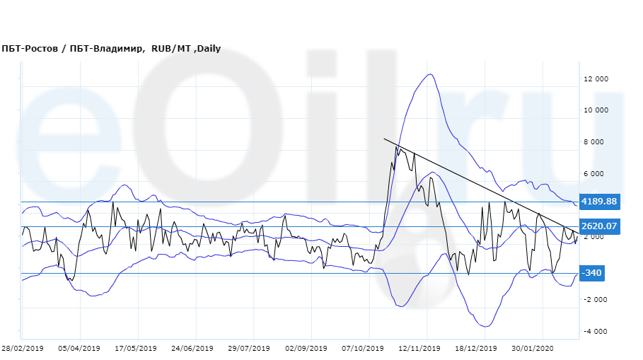 Разница цен между ПБТ на базисе Ростов и ПБТ на базисе Владимир.