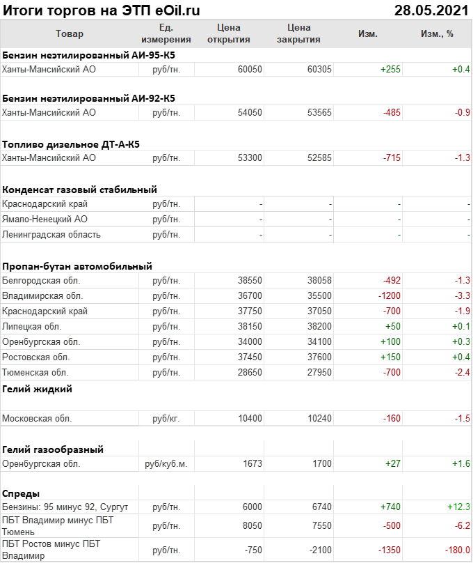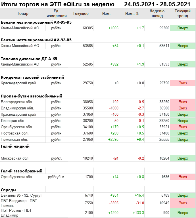 Итоги торгов на ЭТП eOil.ru с 24 по 28 мая 2021