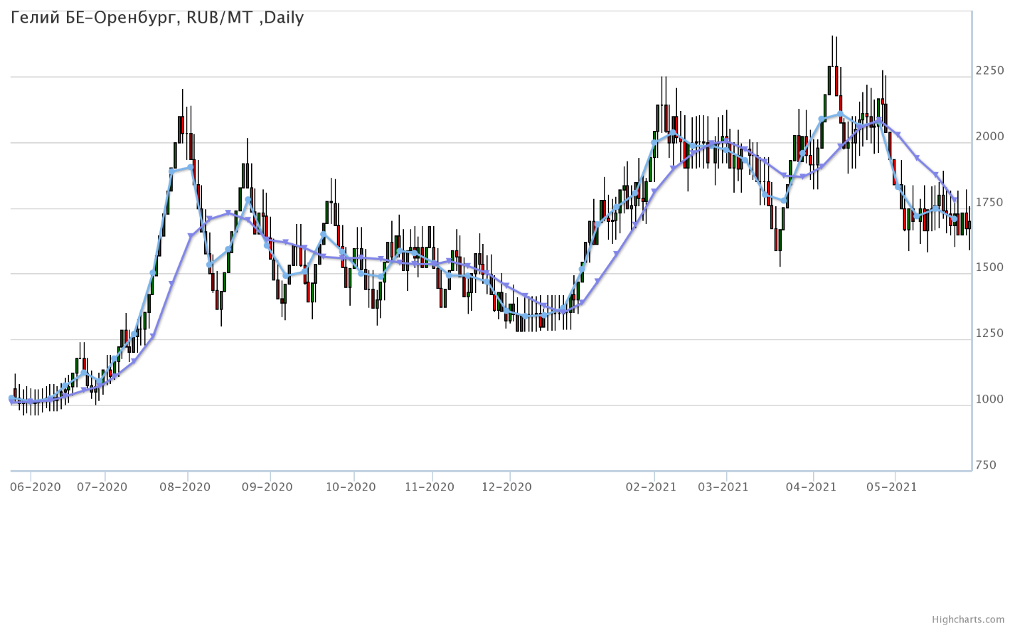 Цены на гелий газообразный, базис поставки Оренбургская область, выросли за неделю на 14 рубля до 1700 рублей за кубический метр.