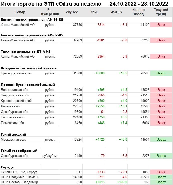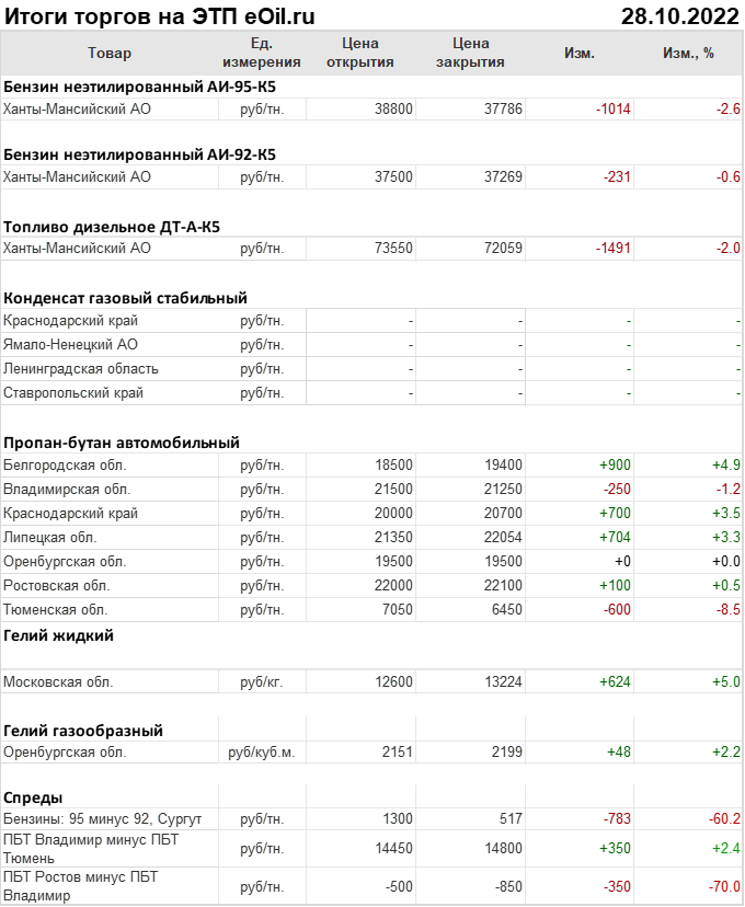 Итоги торгов на ЭТП eOil.ru с 24 по 28 октября 2022 года
