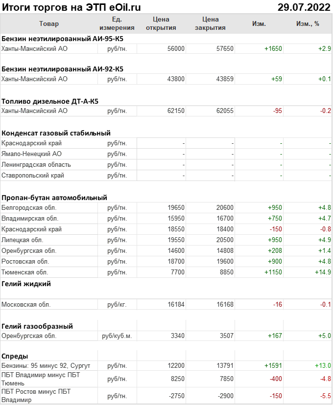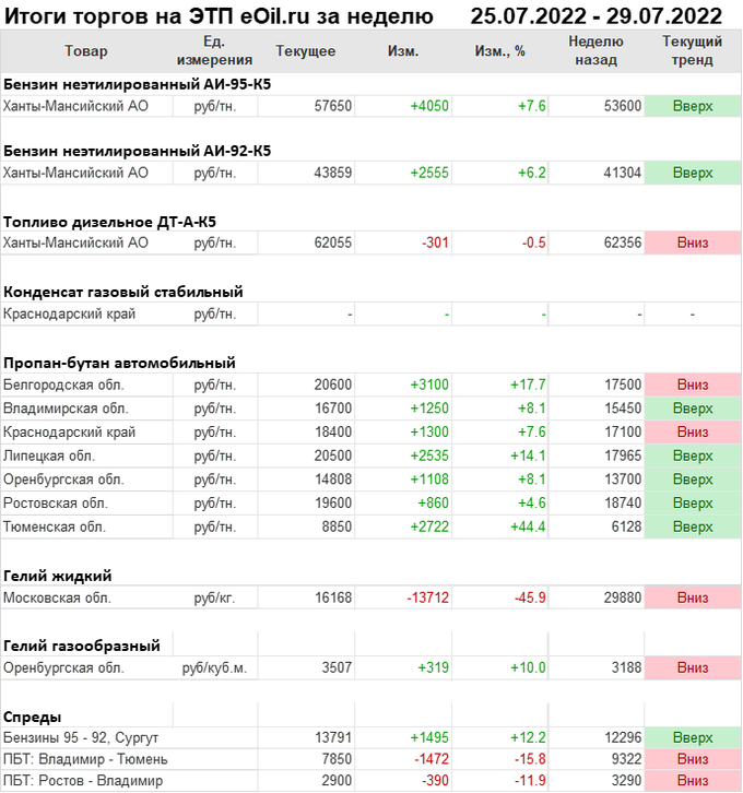 Итоги торгов на ЭТП eOil.ru с 25 по 29 июля 2022 года