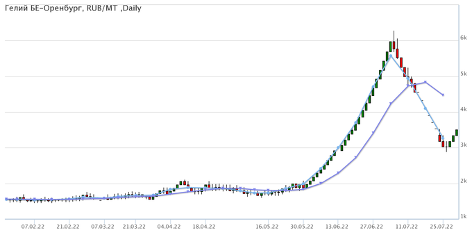 Цены на гелий газообразный, базис поставки Оренбургская область, выросли за неделю на 319 рублей до 3507 рублей за кубический метр.