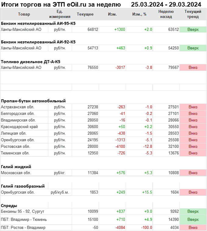Итоги торгов на ЭТП eOil.ru с 25 по 29 марта 2024 года