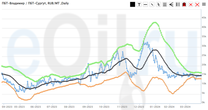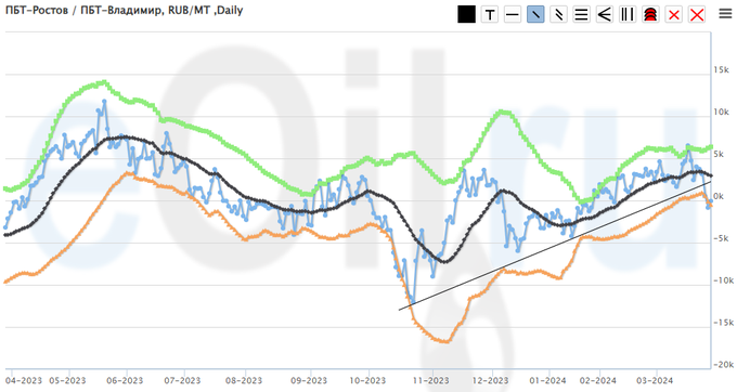Разница цен между ПБТ на базисе Ростов и ПБТ на базисе Владимир.