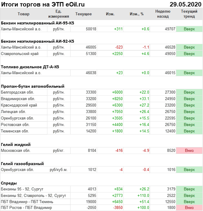 Итоги торгов на ЭТП eOil.ru с 25 по 29 мая 2020