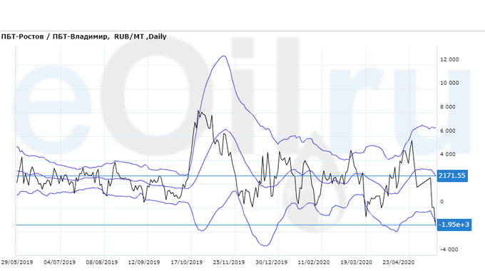 Разница цен между ПБТ на базисе Ростов и ПБТ на базисе Владимир.