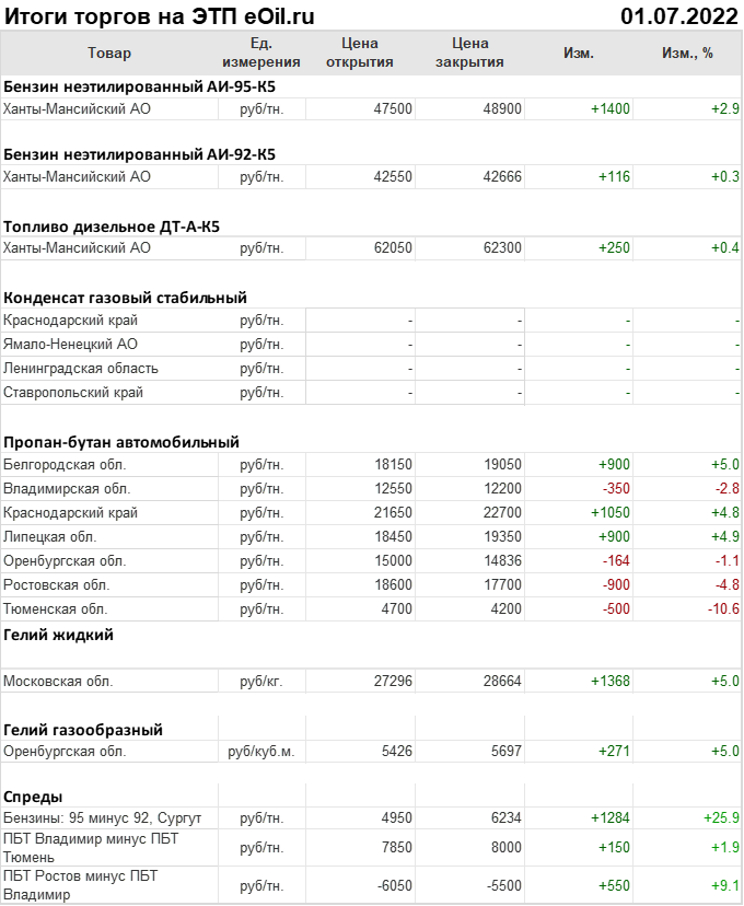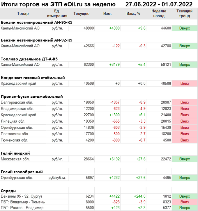 Итоги торгов на ЭТП eOil.ru с 27 июня по 1 июля 2022 года