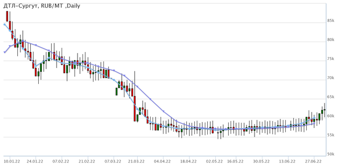 Цены на топливо дизельное ДТ-А-К5, базис поставки Ханты-Мансийский АО, выросли за неделю на 3179 рублей до 62300 рублей за тонну.