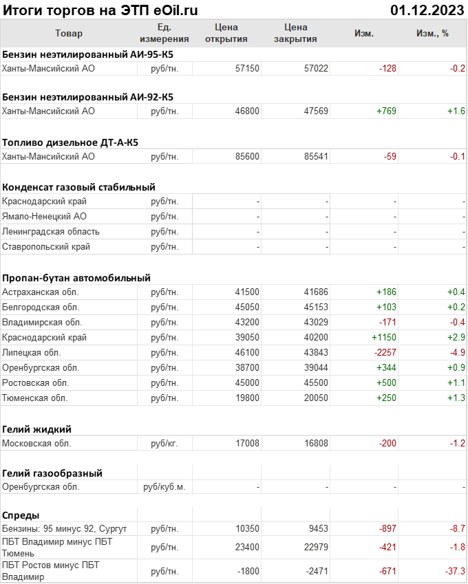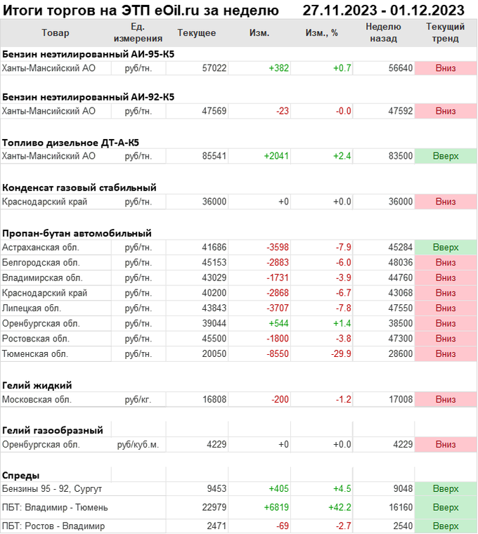 Итоги торгов на ЭТП eOil.ru с 27 ноября по 1 декабря 2023 года