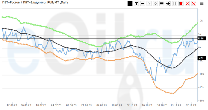 Разница цен между ПБТ на базисе Ростов и ПБТ на базисе Владимир.