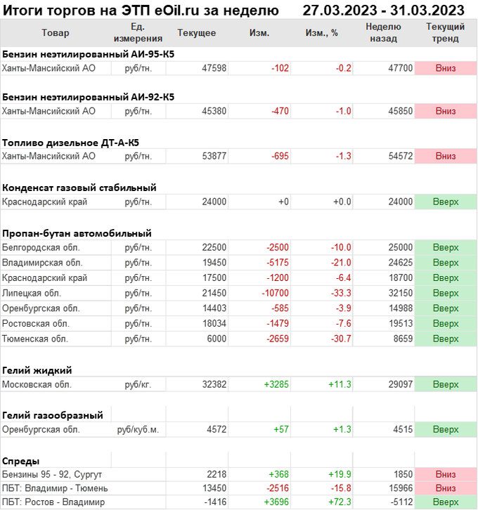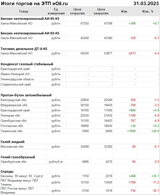 Итоги торгов на ЭТП eOil.ru с 27 по 31 марта 2023 года