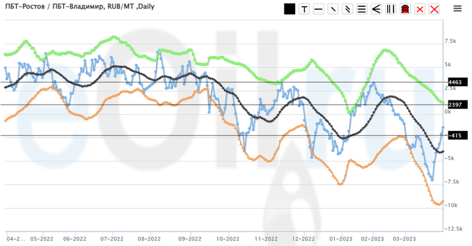 Разница цен между ПБТ на базисе Ростов и ПБТ на базисе Владимир.
