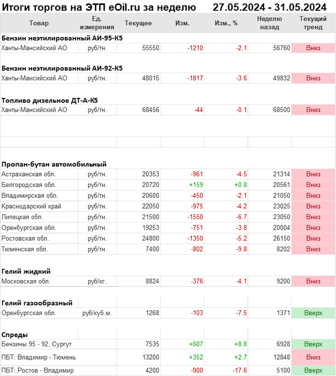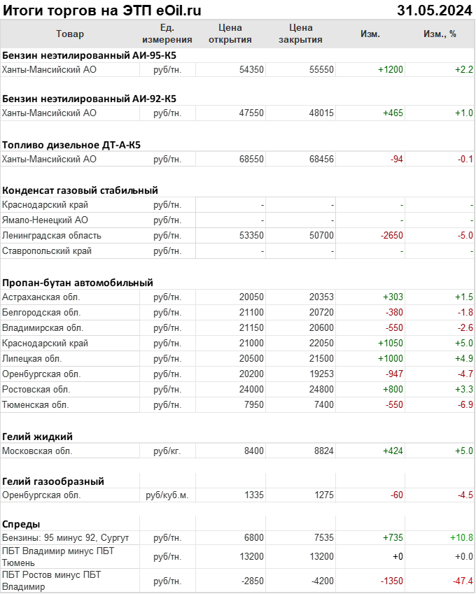 Итоги торгов на ЭТП eOil.ru с 27 по 31 мая 2024 года