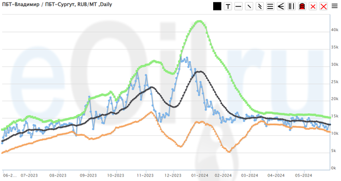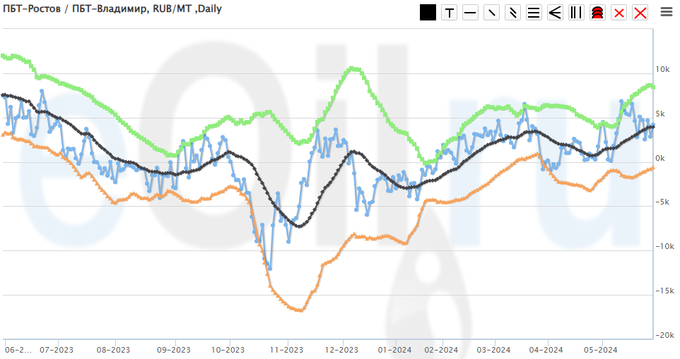 Разница цен между ПБТ на базисе Ростов и ПБТ на базисе Владимир.