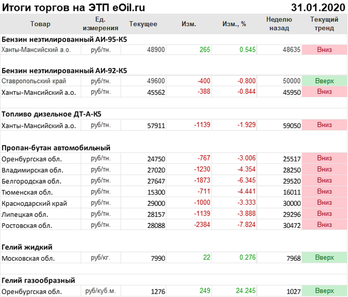 Итоги торгов на ЭТП eOil.ru с 27 по 31 января 2020