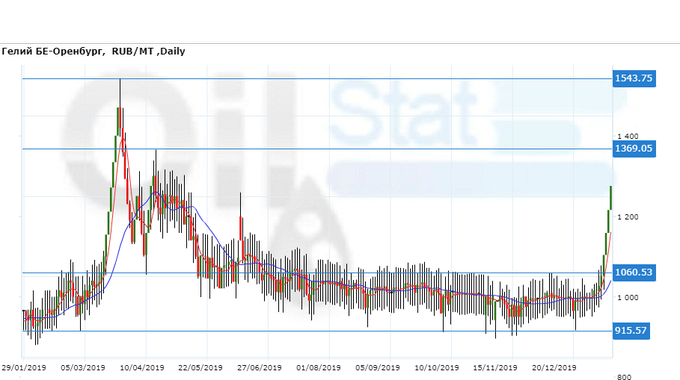 Цены на гелий газообразный, базис поставки Оренбургская область, выросли за неделю на 249 рублей до 1276 рублей за тонну.