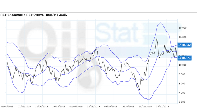 Разница цен между ПБТ на базисе Владимир и ПБТ на базисе Сургут (Ханты-Мансийский а.о.).
