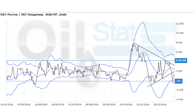Разница цен между ПБТ на базисе Ростов и ПБТ на базисе Владимир.
