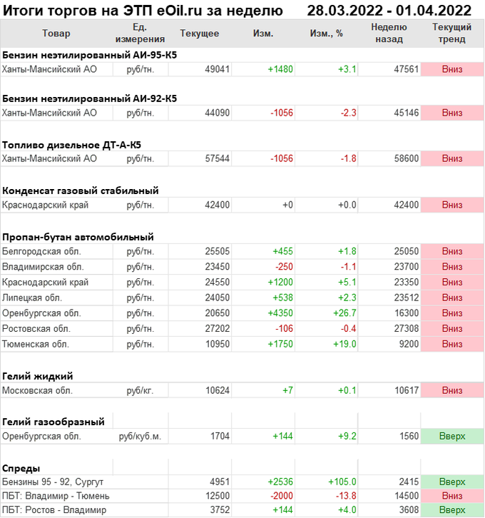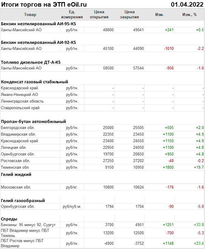 Итоги торгов на ЭТП eOil.ru с 28 февраля по 1 апреля 2022 года