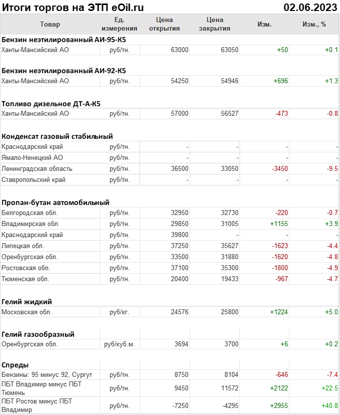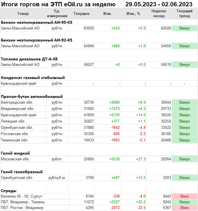 Итоги торгов на ЭТП eOil.ru с 29 мая по 2 июня 2023 года