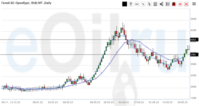 Цены на гелий газообразный, базис поставки Оренбургская область, выросли за неделю на 497 рублей до 3700 рублей за кубический метр.
