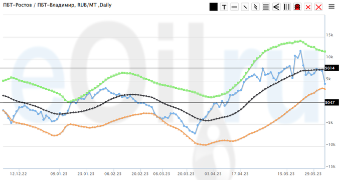 Разница цен между ПБТ на базисе Ростов и ПБТ на базисе Владимир.