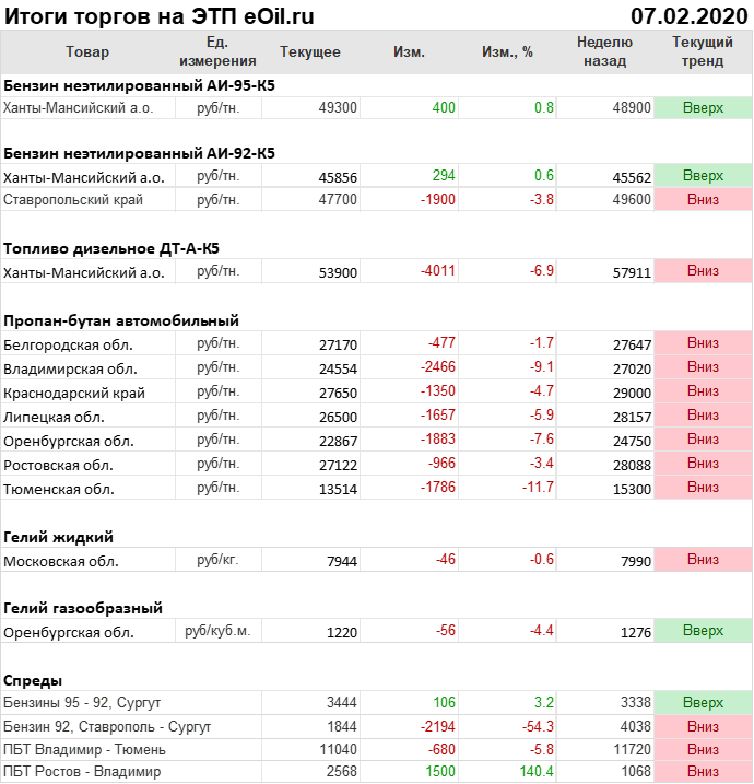 Итоги торгов на ЭТП eOil.ru с 3 по 7 февраля 2020