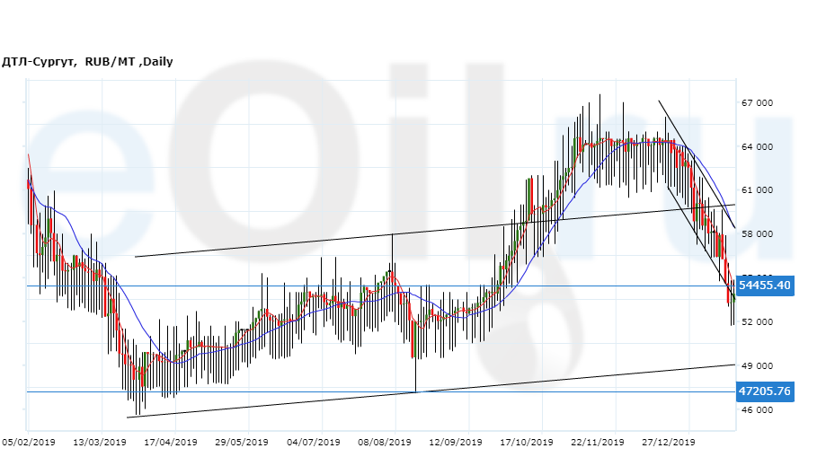 Цены на топливо дизельное ДТ-А-К5, базис поставки Ханты-Мансийский а.о., упали за неделю на 4011 рубля до 53900 рубля за тонну.