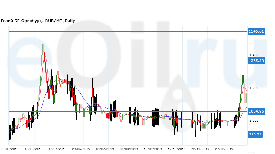 Цены на гелий газообразный, базис поставки Оренбургская область, упали за неделю на 56 рублей до 1220 рубля за тонну.